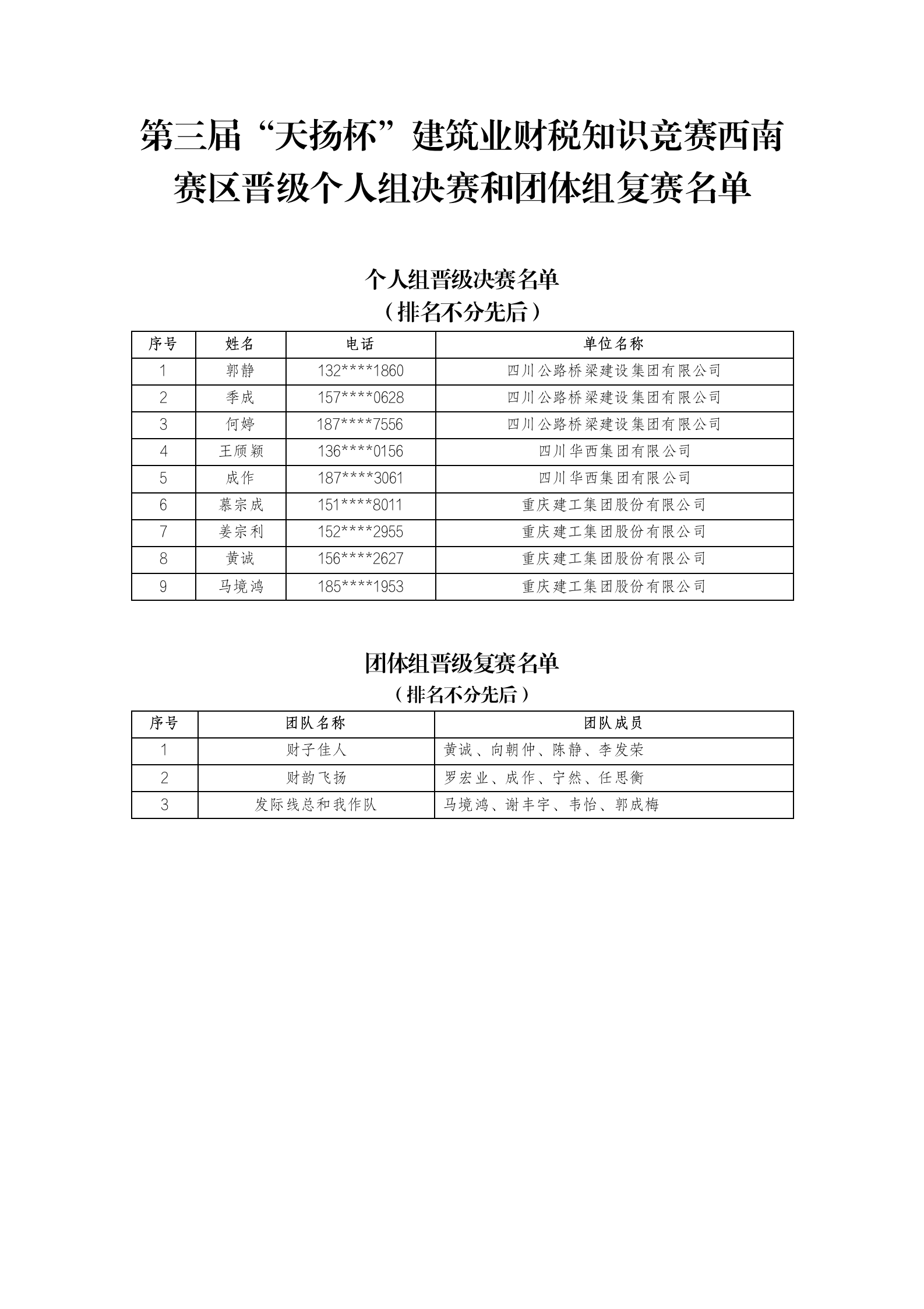 2. 第三届“天扬杯”建筑业财税知识竞赛晋级个人组决赛和团体组复赛名单