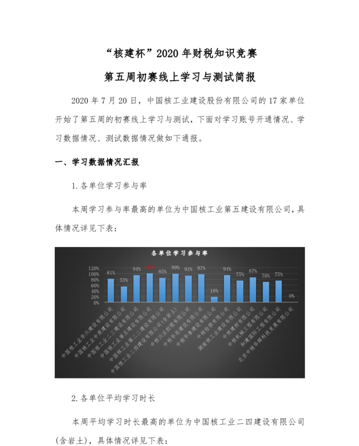 “核建杯”2020年财税知识竞赛 第五周初赛线上学习与测试简报