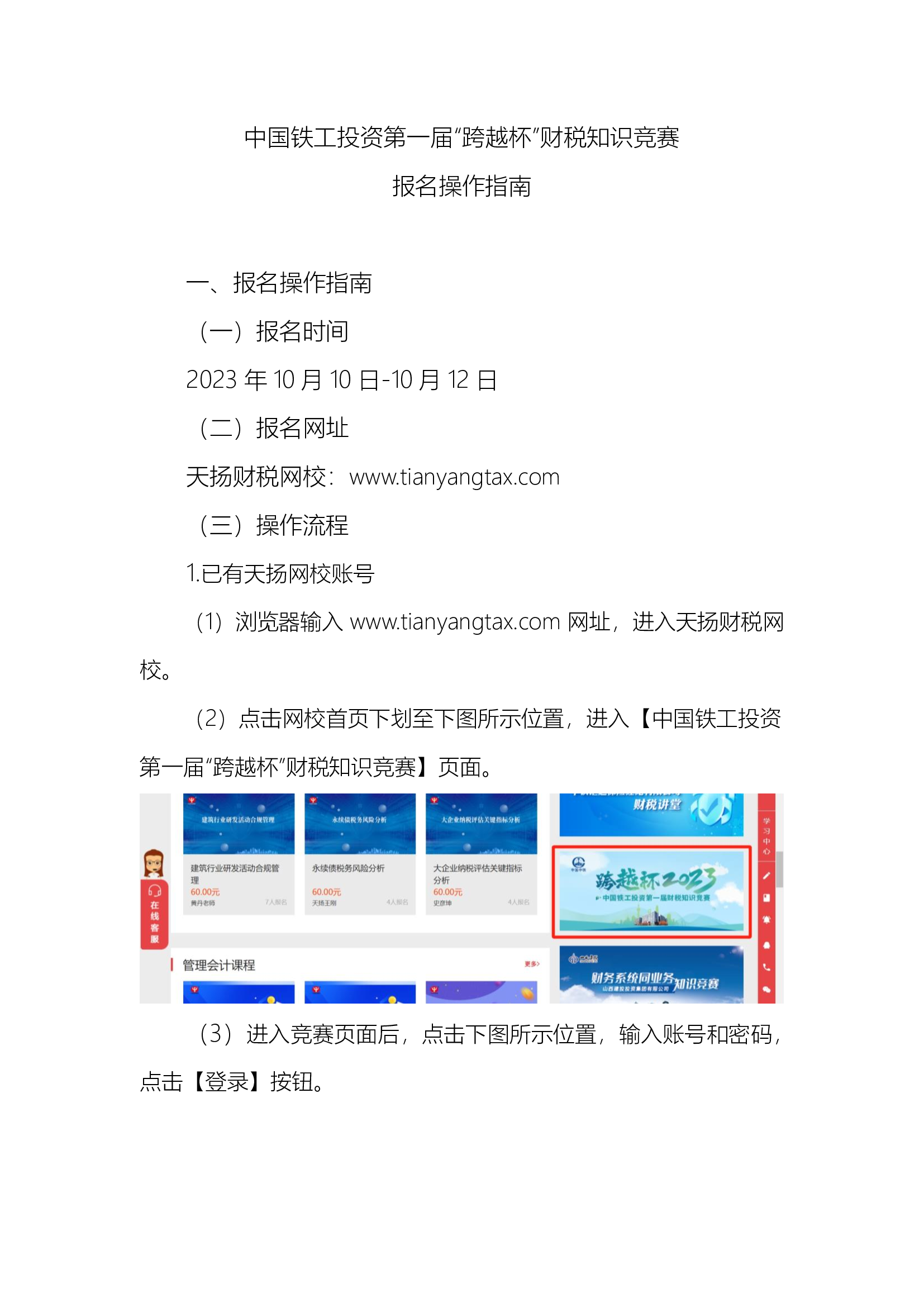 中国铁工投资第一届“跨越杯”财税知识竞赛竞赛报名操作指南