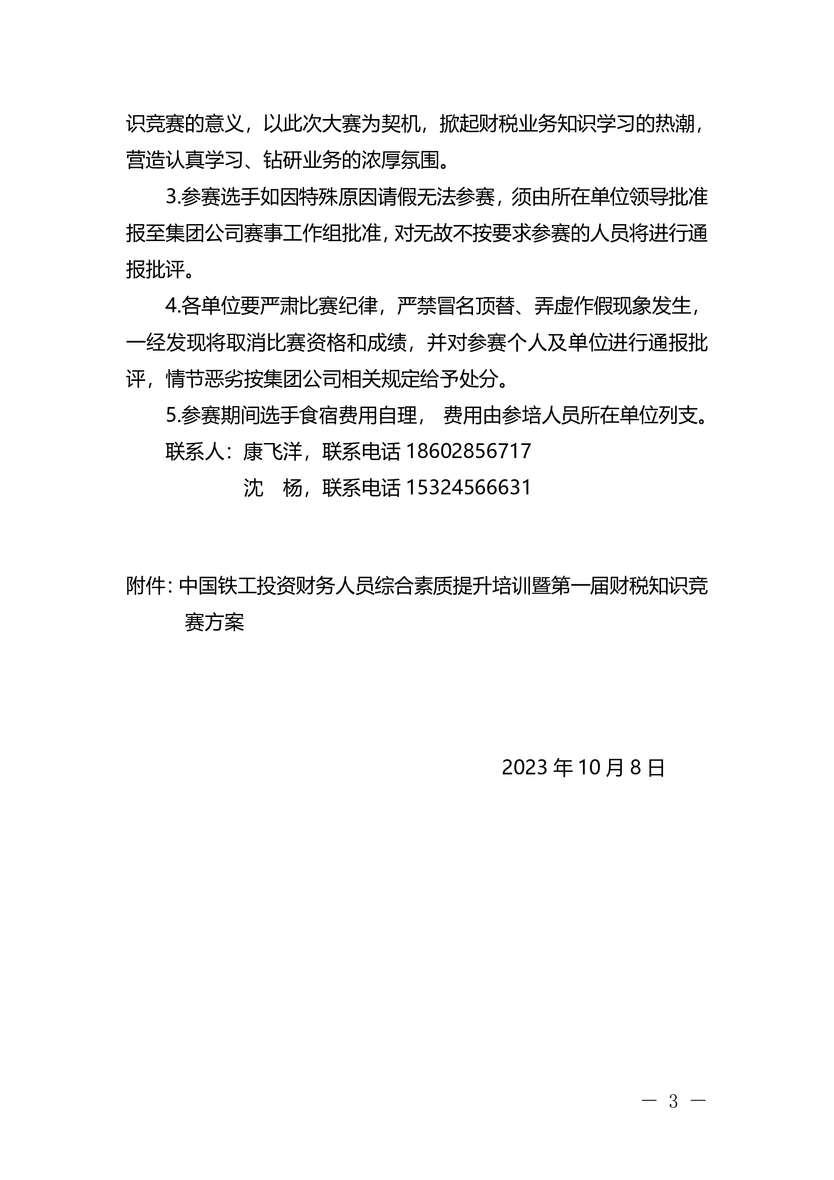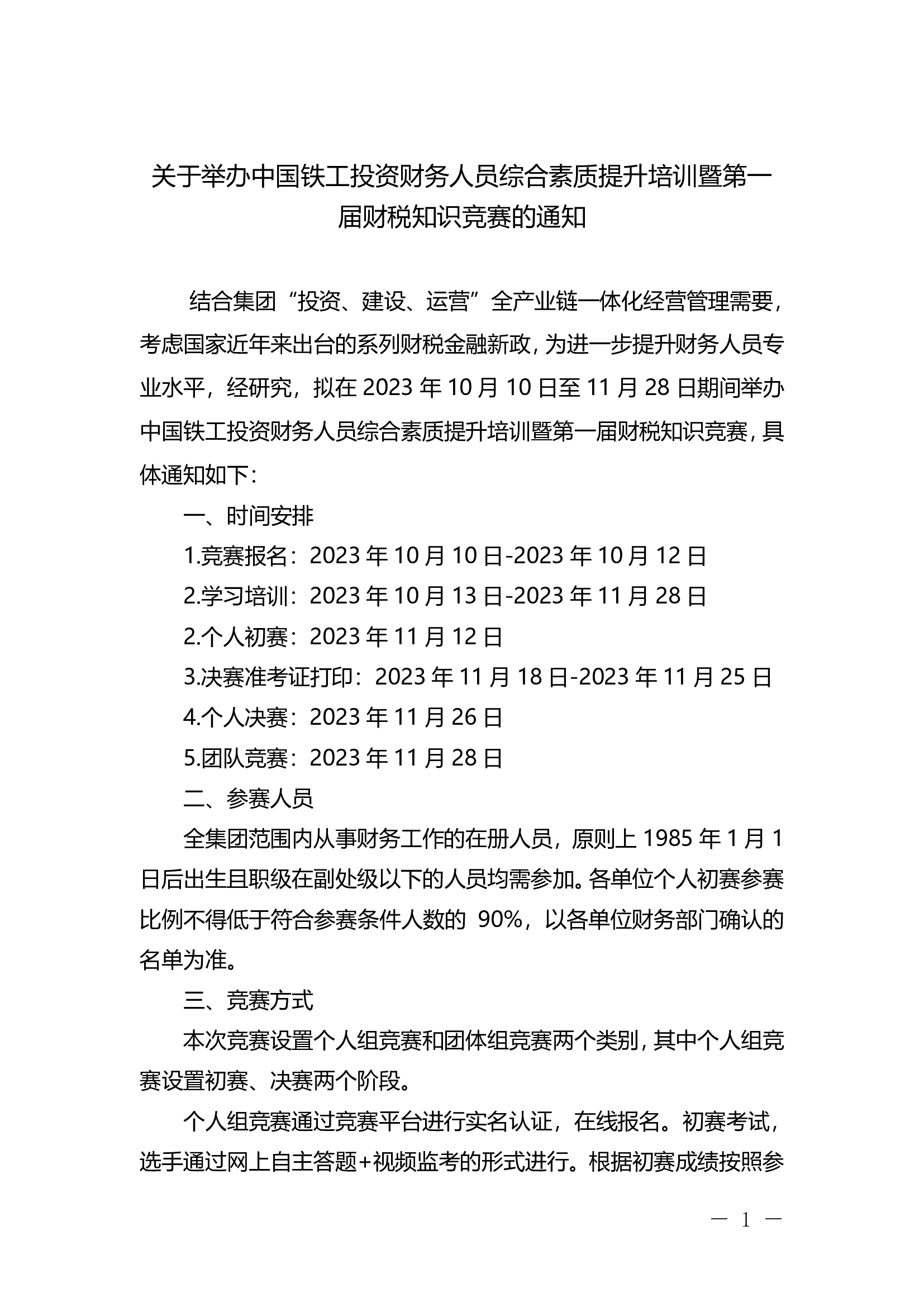关于举办中国铁工投资财务人员综合素质提升培训暨第一届财税知识竞赛的通知