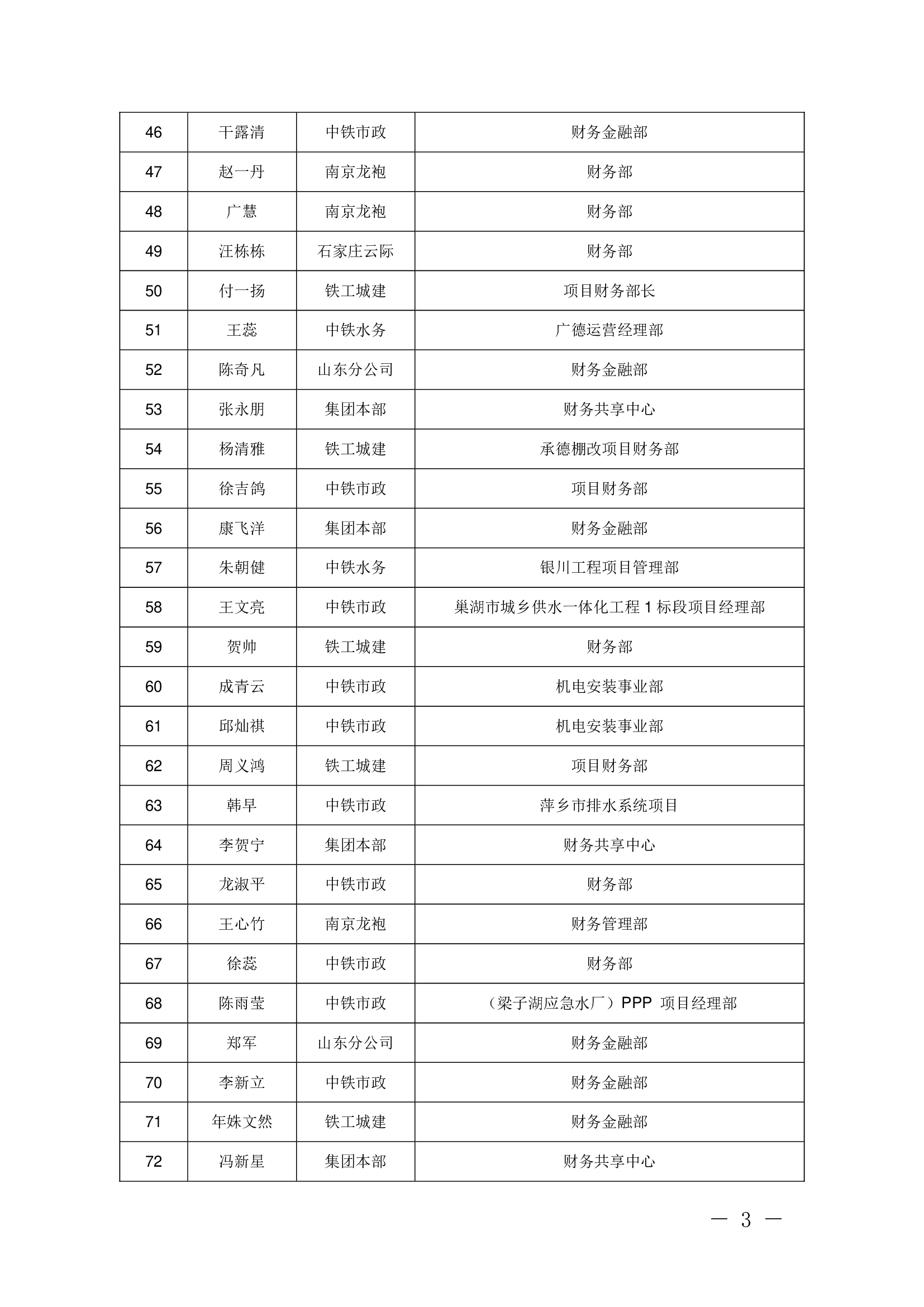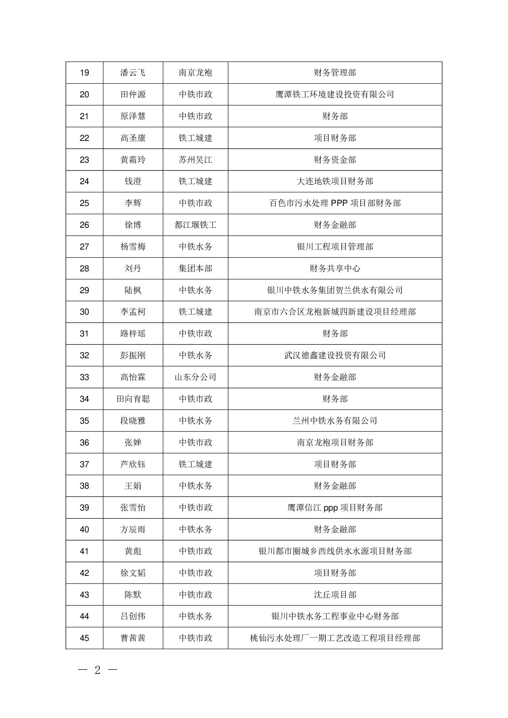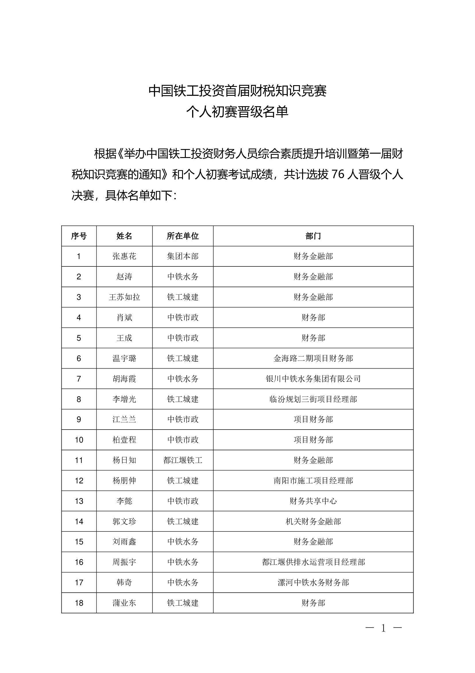 中国铁工投资首届财税竞赛个人决赛晋级人员名单