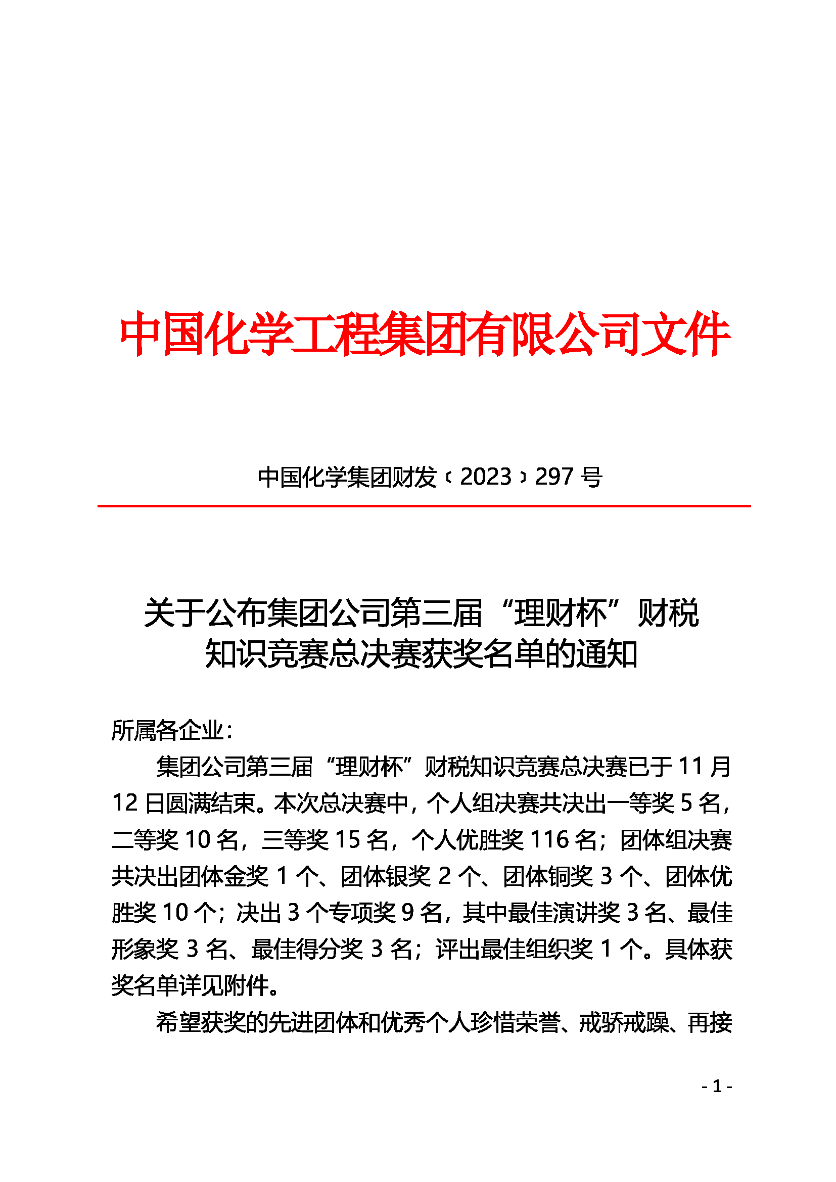 关于公布集团公司第三届“理财杯”财税知识竞赛总决赛获奖名单的通知(财297)