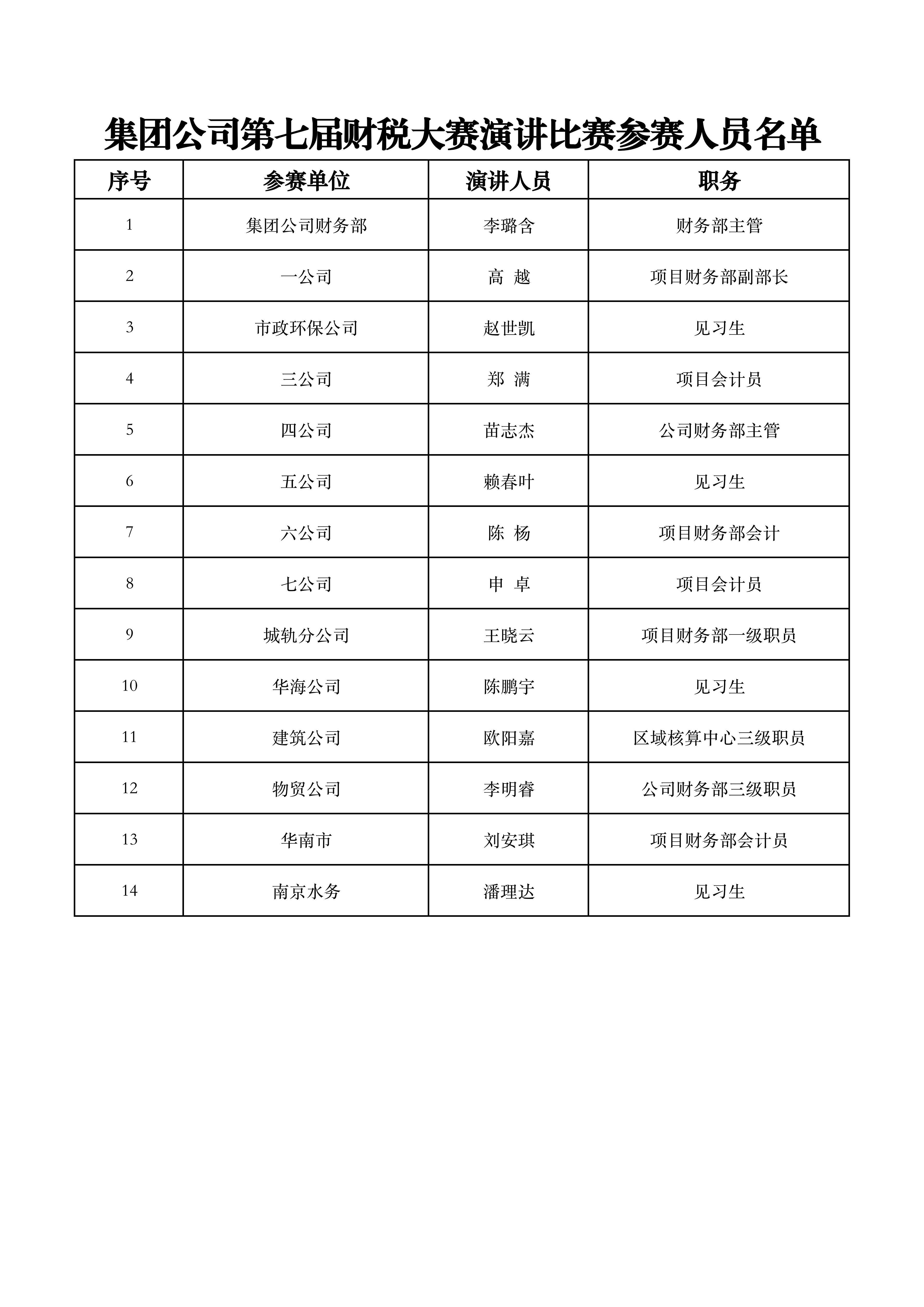 【个人演讲竞赛通知】中铁上海工程局第七届财税大赛演讲比赛参赛人员名单