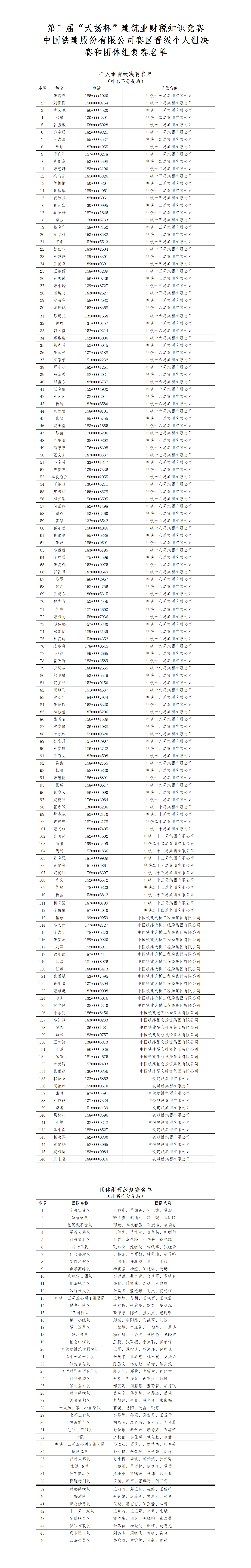 中国铁建股份有限公司赛区晋级个人组决赛和团体组复赛名单