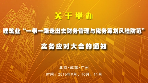 企业面临了解不同项目所在地东道国的政策法规,做好财务风险管控,架构融资及利润的分配,处理复杂的境外所得抵免及增值税退税,最终实现企业价值最大化等诸多迫切需要解决的难题。为帮助建筑企业在一带一路“走出去”新机遇下解决面临的财税风险难题,兹决定举办“建筑业一带一路走出去财务管理与税务筹划风险防范实务应对大会”。