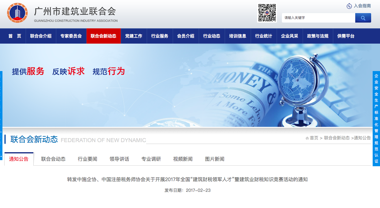 【广州市建筑业联合会】关于开展2017年全国“建筑财税领军人才” 暨建筑业财税知识竞赛活动的通知