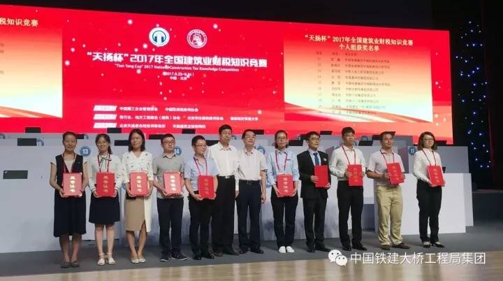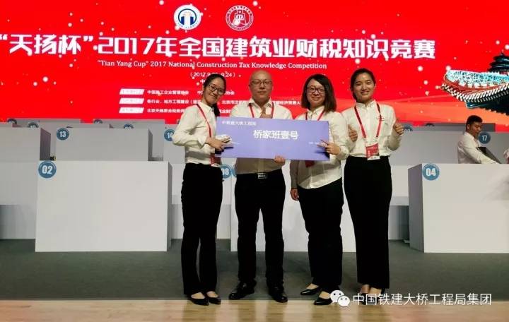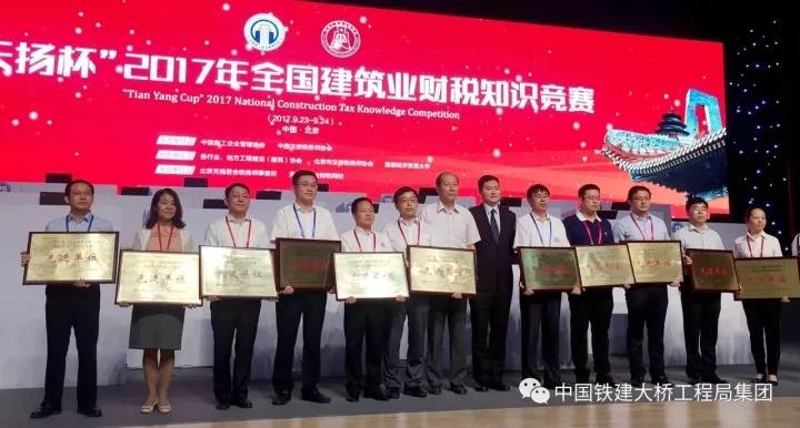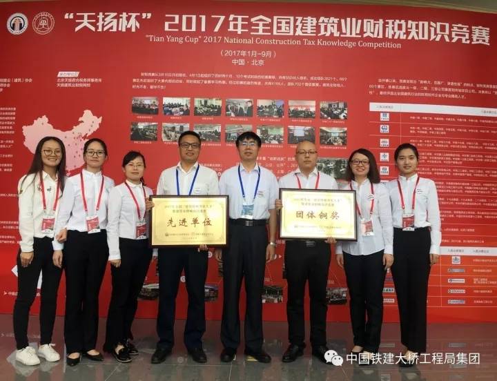 9月24日,中国铁建大桥工程局集团代表队“桥家班壹号队”载誉而归,在“天扬杯”2017年全国建筑业财税知识竞赛中荣获团体铜奖,团队笔试成绩为全国第四名、中国铁建赛区第一名。个人方面,参赛的六名选手成绩斐然,1人荣获金奖(在全国排名第七、中国铁建赛区排名第一),3人获得银奖,2人获得铜奖。另外,中国铁建大桥工程局集团被组委会授予“先进单位”荣誉称号。