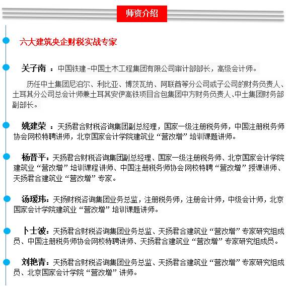 专注服务于建筑集团的税务服务机构——天扬财税咨询集团财税专家。
