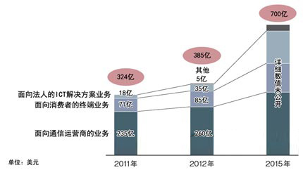 在面向通信运营商的通信设备领域日渐构筑稳固地位的同时,华为还在扩大业务范围。例如强化了以智能手机为代表的消费者终端业务,以及提供数据中心和办公设备的法人ICT解决方案业务(图2)。