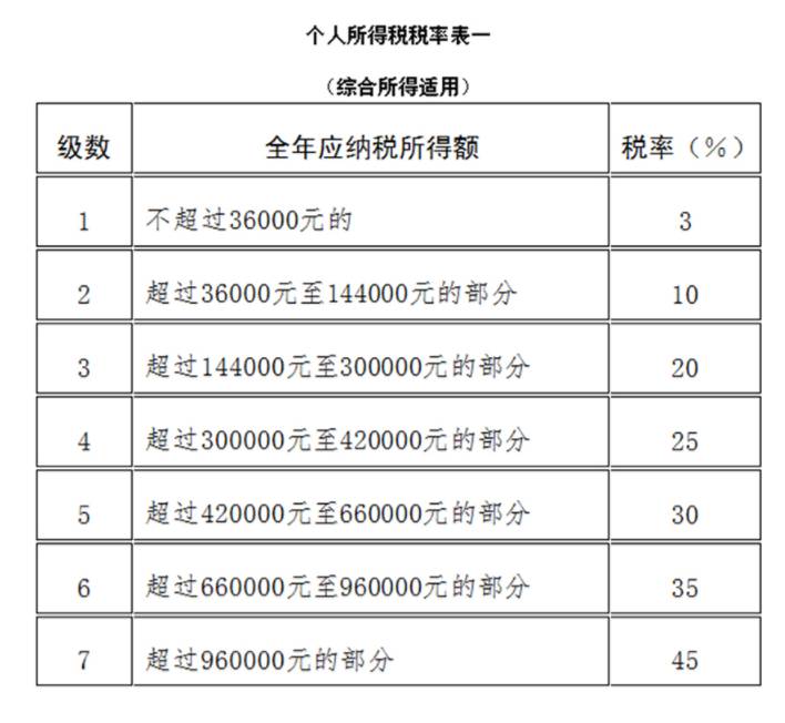 (注1:本表所称全年应纳税所得额是指依照本法第六条的规定,居民个人取得综合所得以每一纳税年度收入额减除费用六万元以及专项扣除、专项附加扣除和依法确定的其他扣除后的余额。