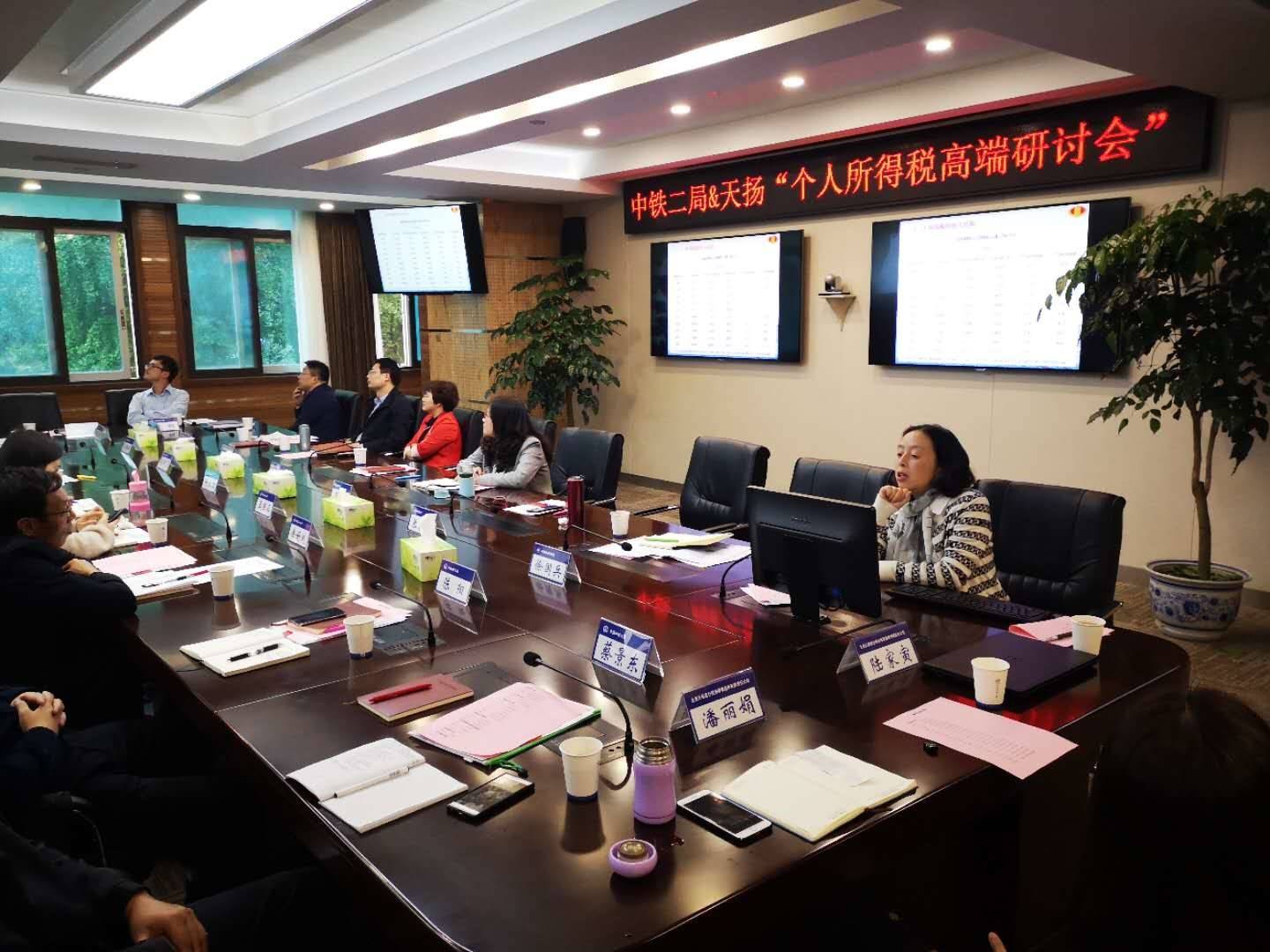 2018年10月17日下午,由中国中铁二局集团和天扬君合财税服务集团共同主办的“个人所得税高端研讨会”在成都市中铁二局集团二层会议室召开。本次会议由中铁二局集团财务部魏道洪部长做欢迎致辞,并邀请所有参会人员参观了中铁二局陈列室并合影留念。本次参会的企业有中铁二局、中铁二院、中铁八局、中铁二十三局、中铁建昆仑投资等企业单位。
