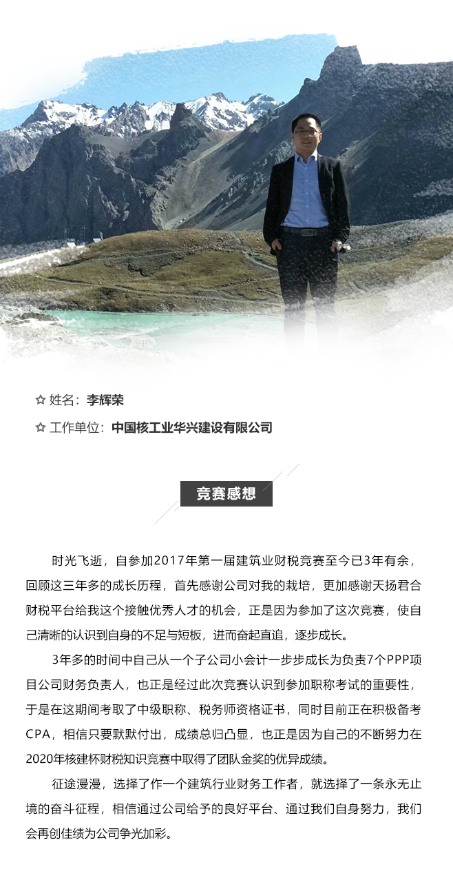 时光飞逝,自参加2017年第一届建筑业财税竞赛至今已3年有余,回顾这三年多的成长历程,首先感谢公司对我的栽培,