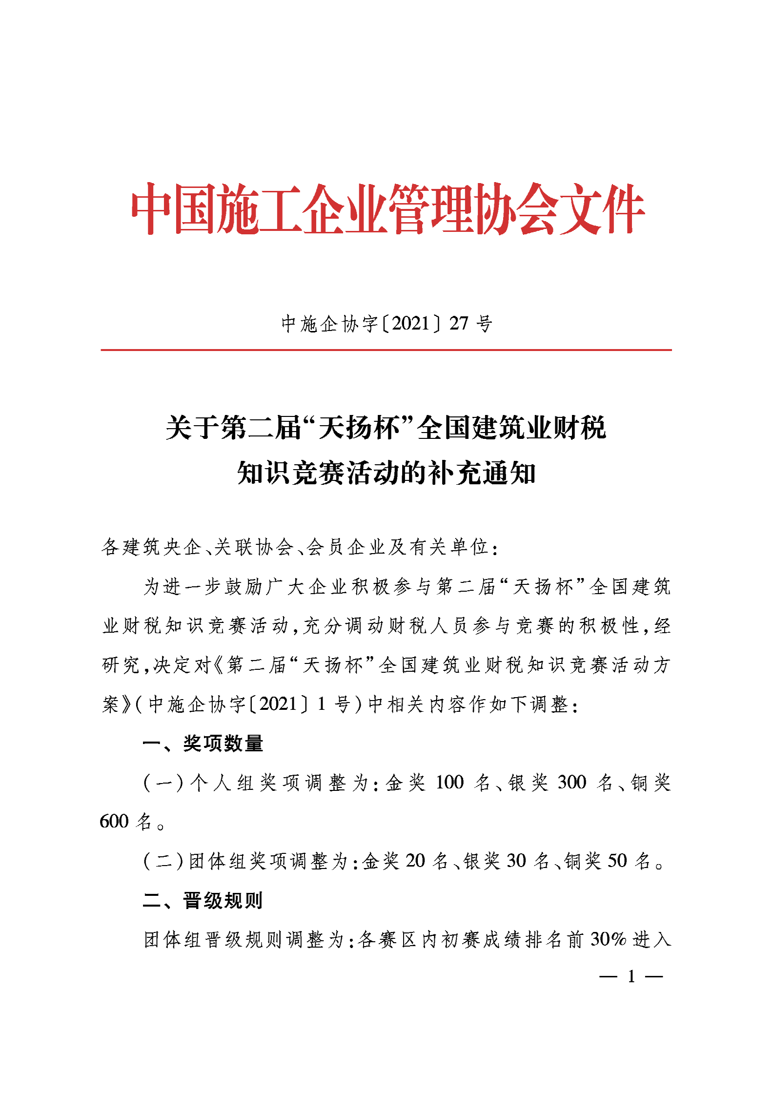 关于第二届全国建筑业财税知识竞赛活动的补充通知