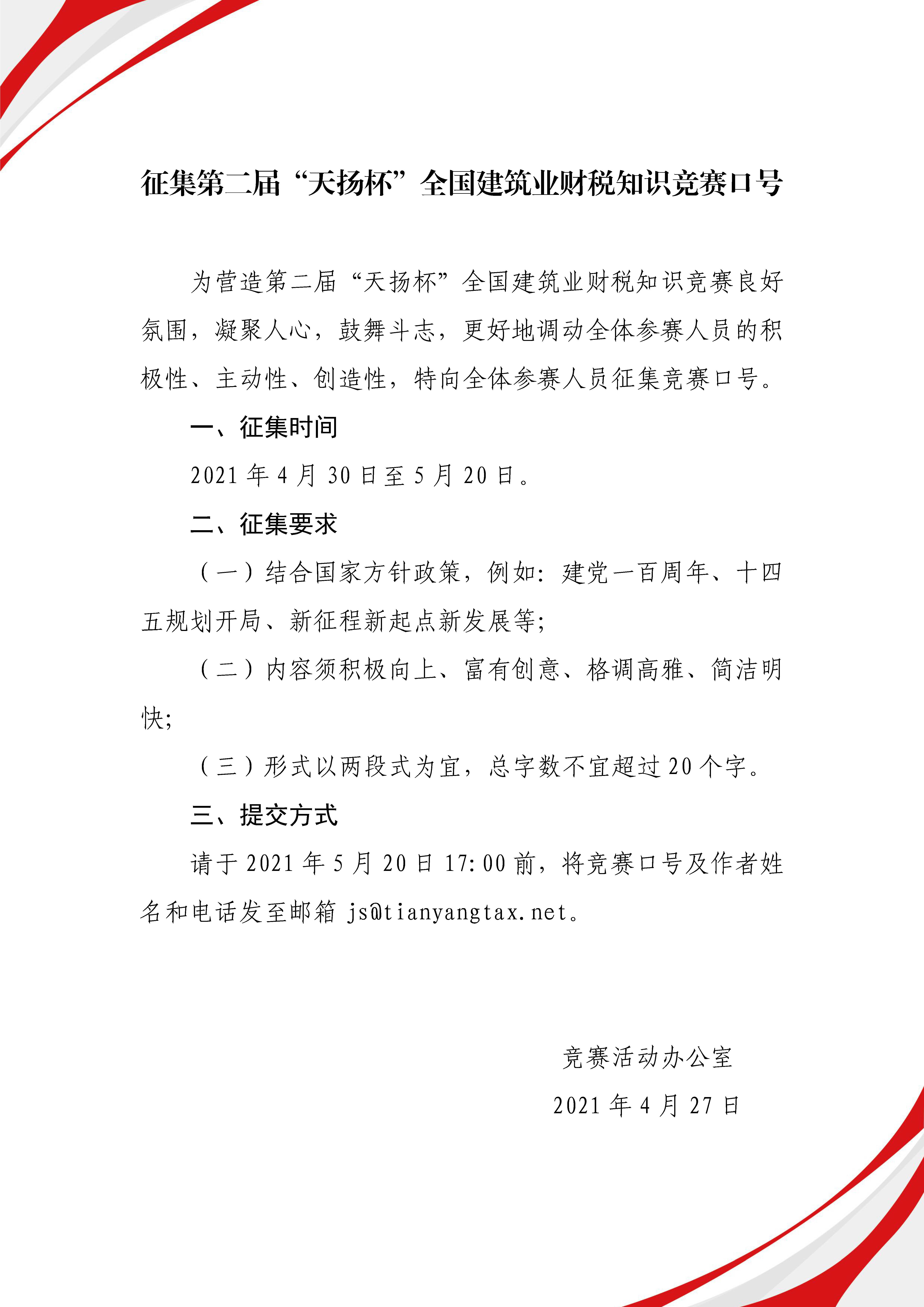 征集第二届“天扬杯”全国建筑业财税知识竞赛口号