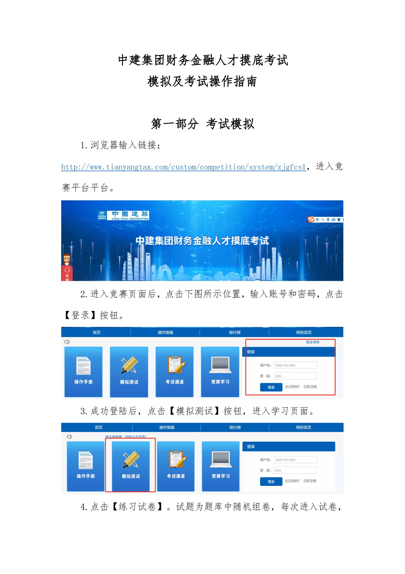中建集团财务金融人才摸底考试系统操作指南