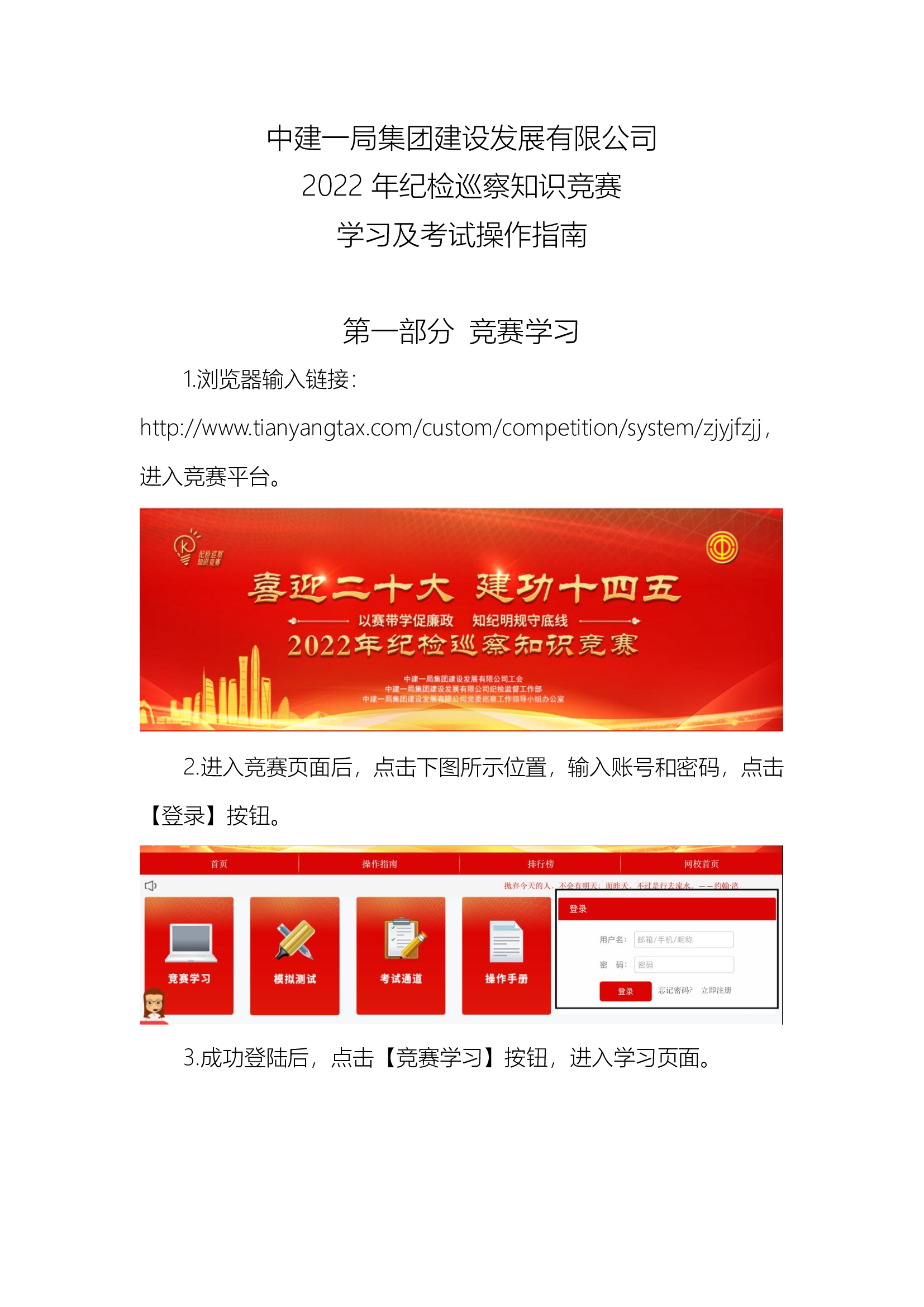 中建一局建设发展纪检巡察竞赛学习与考试操作指南