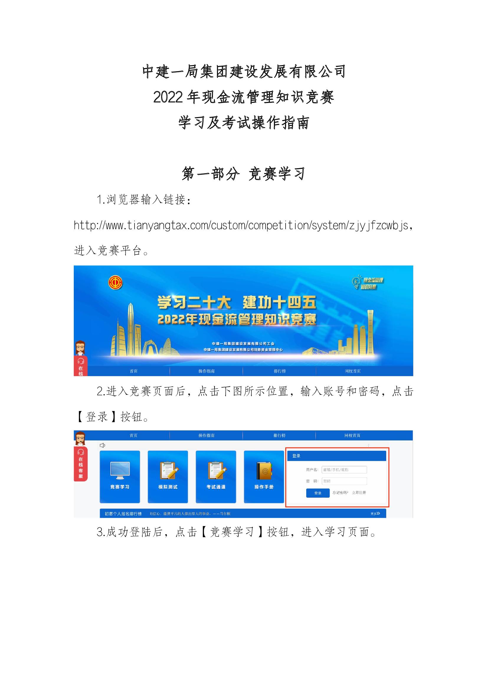 中建一局建设发展有限公司现金流管理知识竞赛竞赛操作指南
