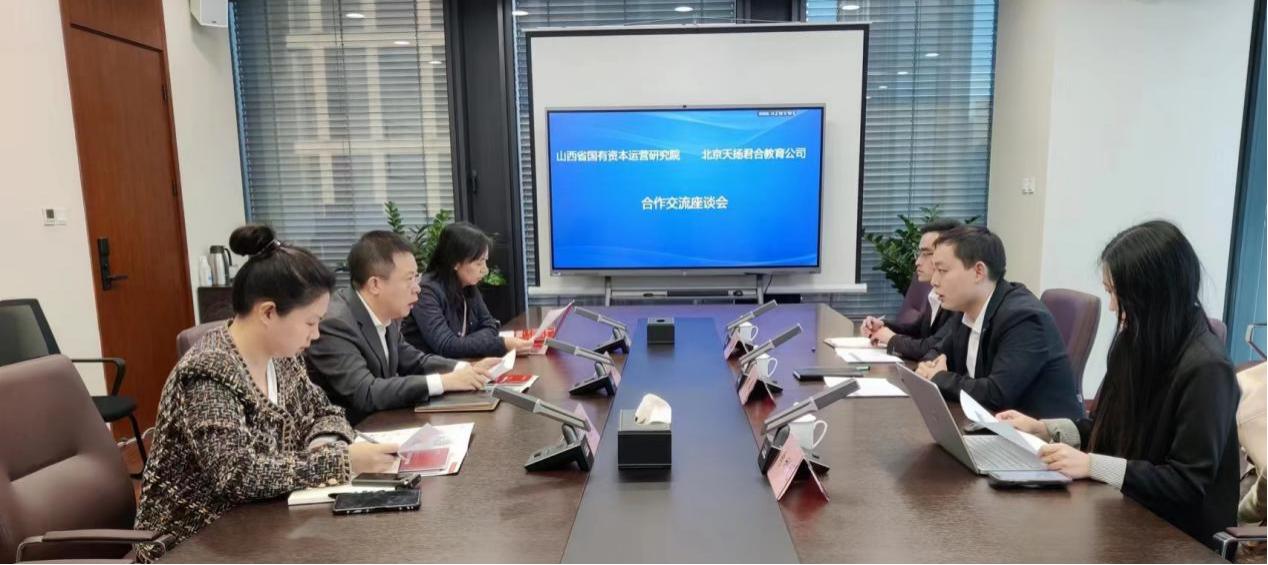 省国资运营研究院副院长刘捷,北京天扬君合教育公司相关人员参加座谈会。双方的交流为后期的合作奠定了基础并明确了合作方向。