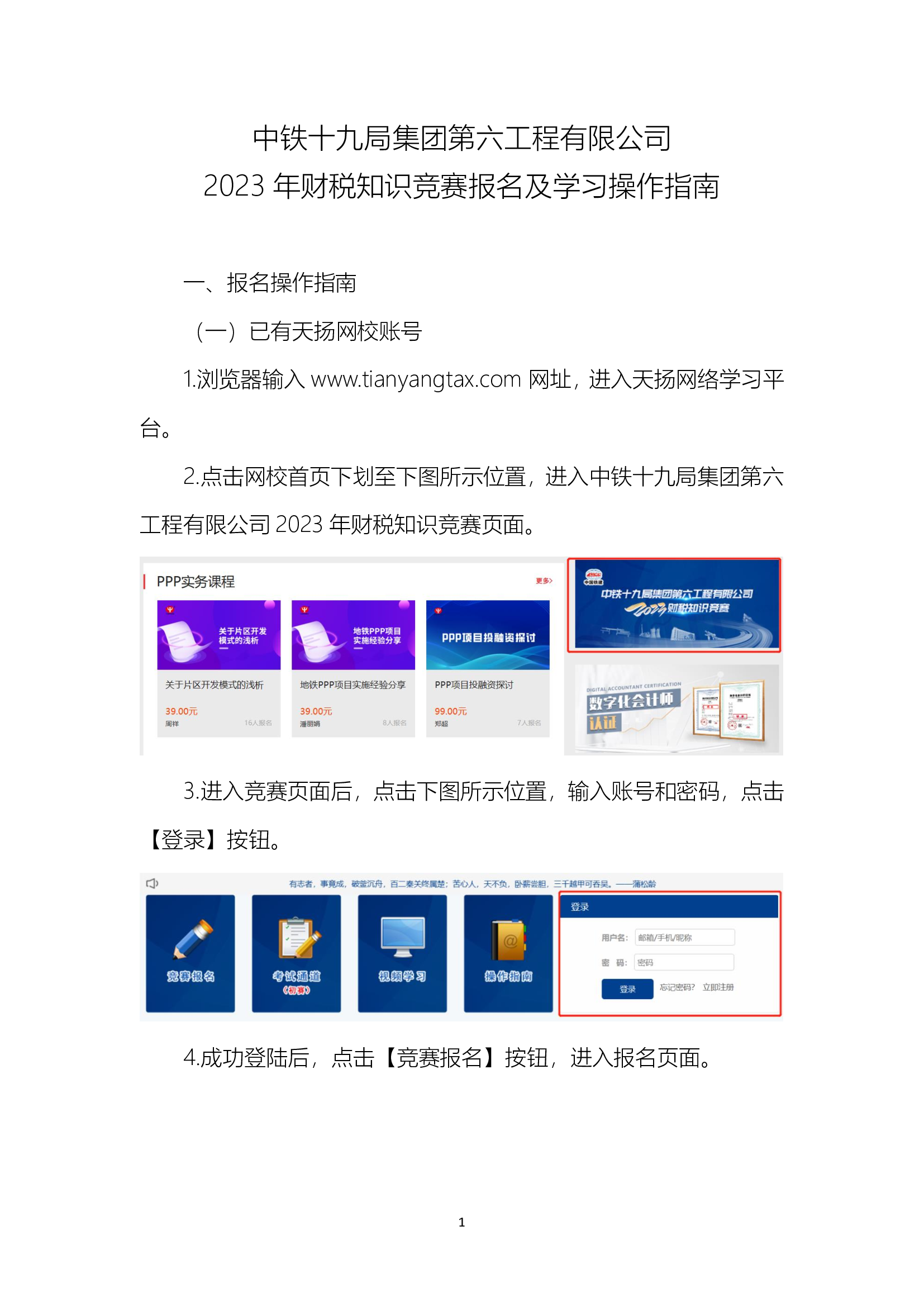 中铁十九局集团第六工程有限公司2023年财税知识竞赛报名及学习操作指南