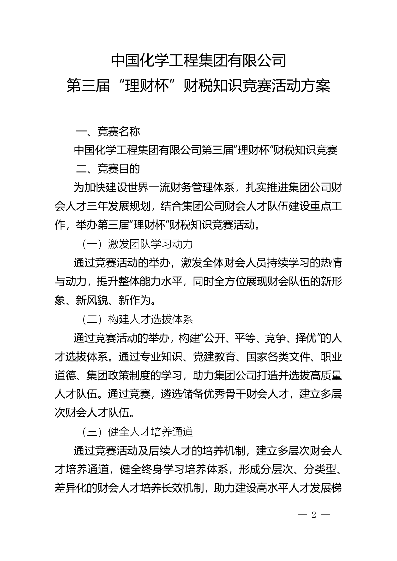 关于印发《集团公司第三届“理财杯”财税知识竞赛活动方案》的通知