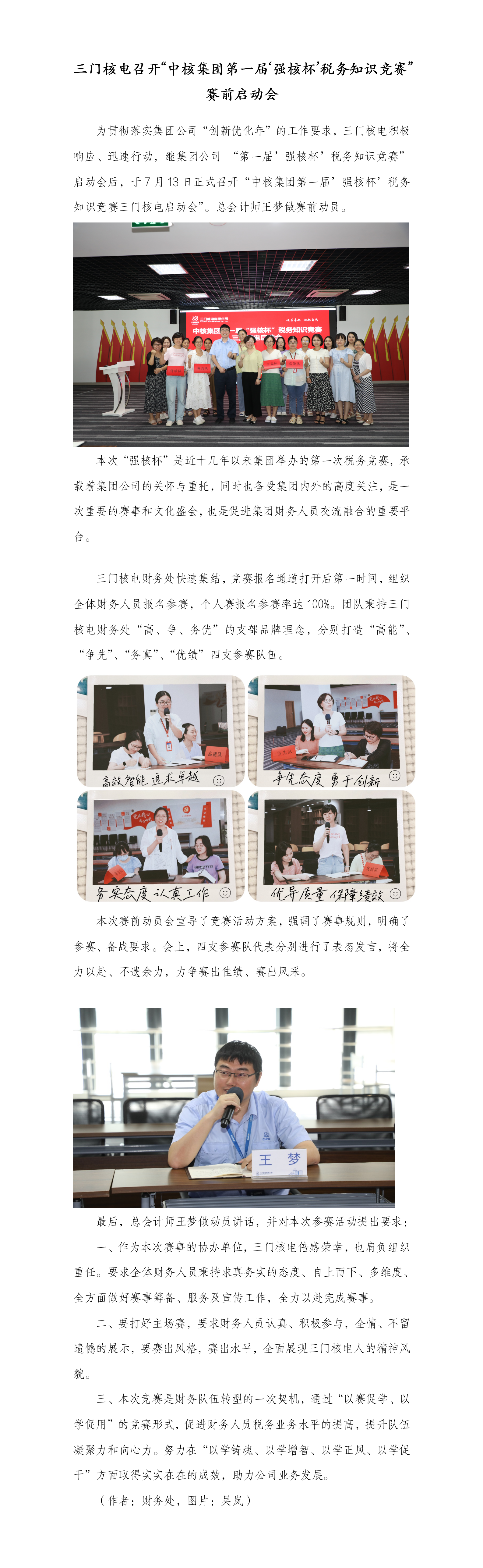 【竞赛简讯】三门核电召开“中核集团第一届‘强核杯’税务知识竞赛”赛前启动会