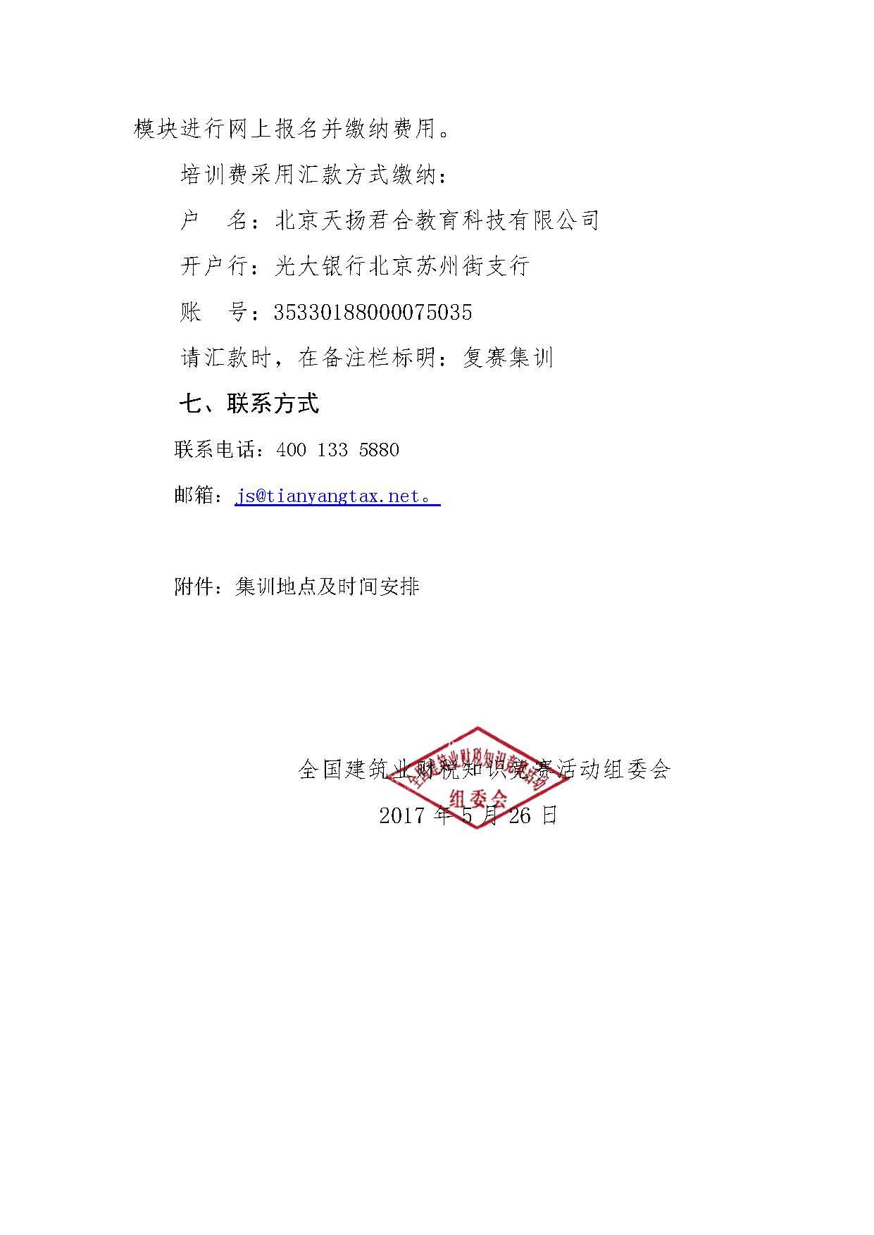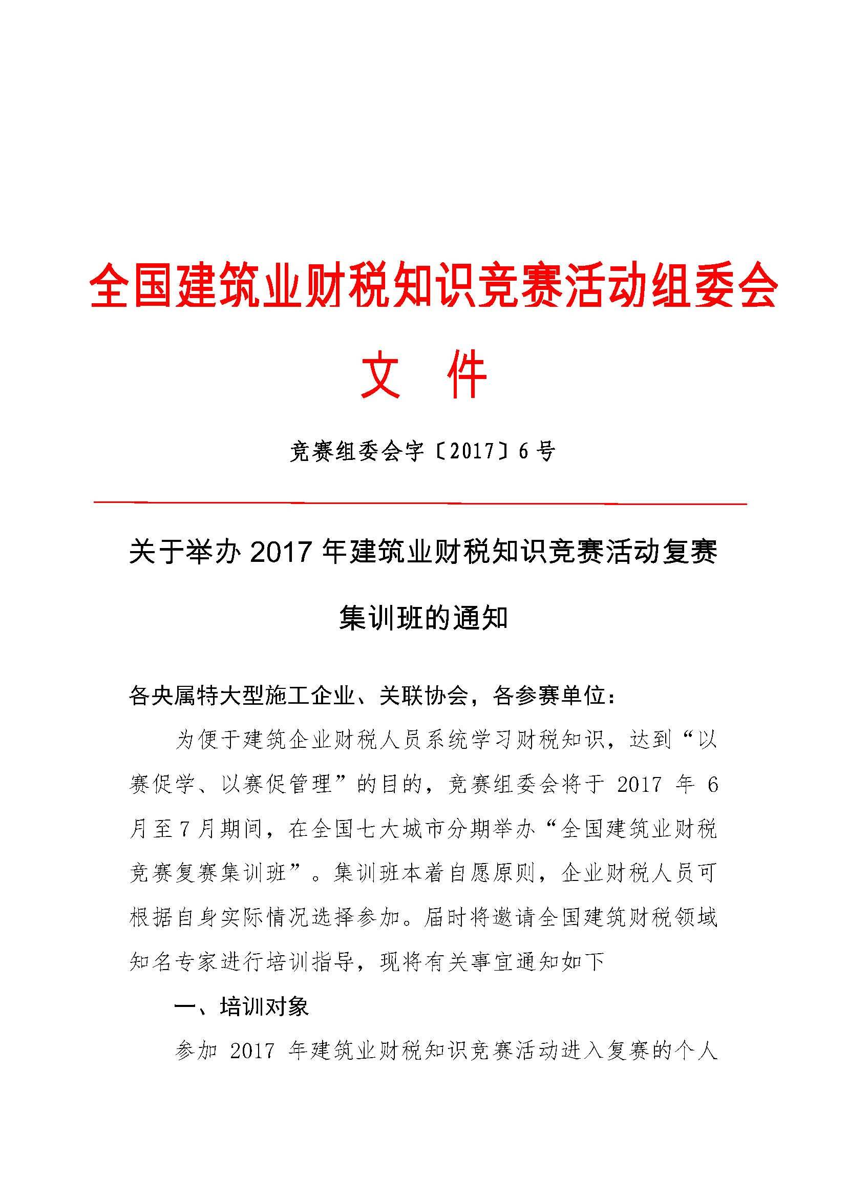 关于举办2017年建筑业财税知识竞赛活动复赛集训班的通知