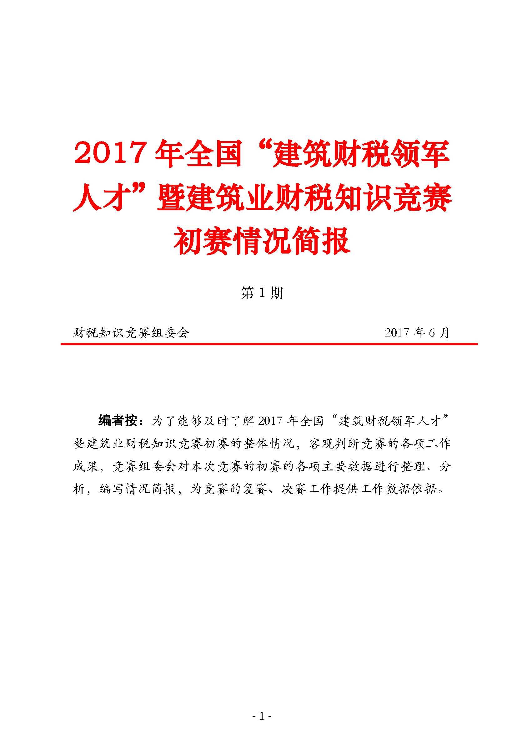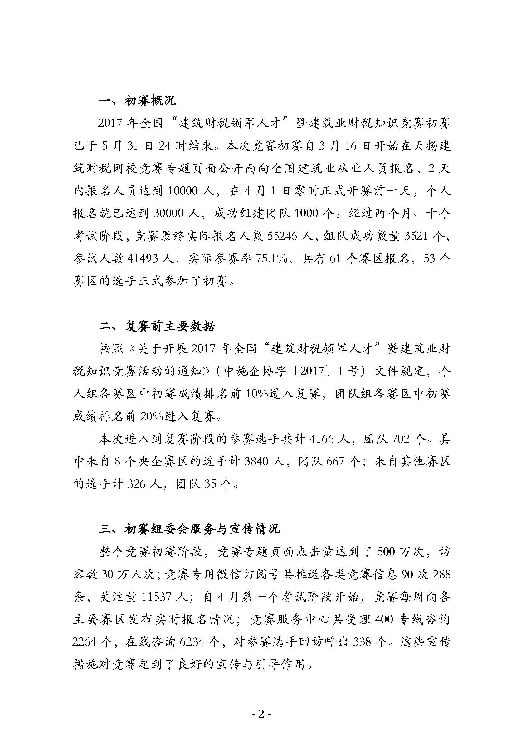 2017年全国“建筑财税领军人才” 暨建筑业财税知识竞赛初赛情况简报