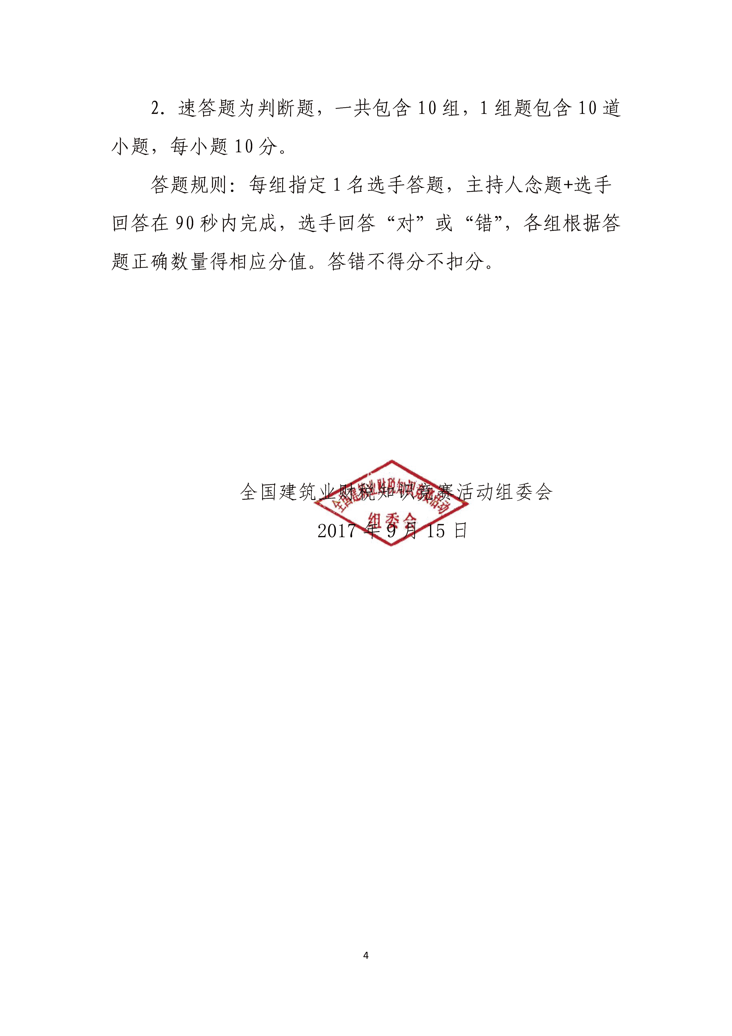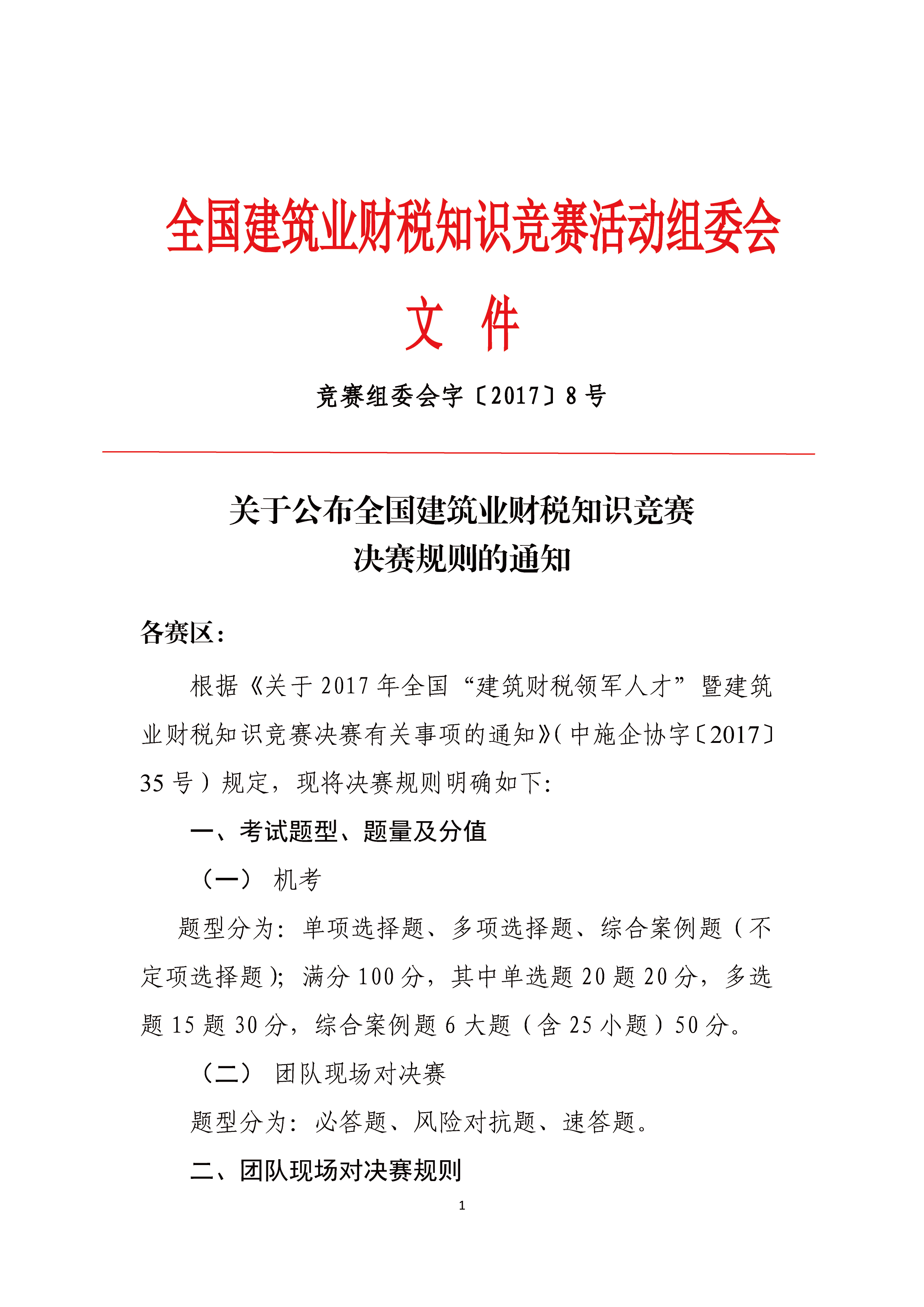 关于公布全国建筑业财税知识竞赛决赛规则的通知