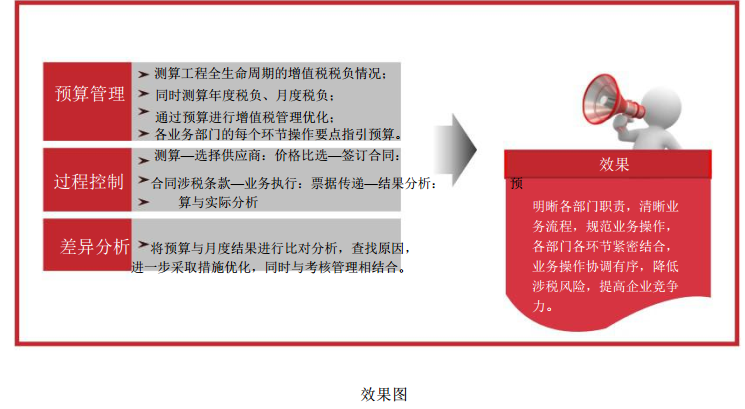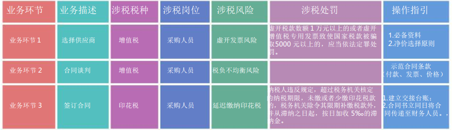 通过分析经济业务事项现状、涉税处罚风险、政策依据等内容。形成纳税健康体检报告;以企业经济业务流程为核心,结合企业涉及的税种,梳理企业经济业务涉及的纳税环节及相关部门人员岗位,明确各环节岗位职责,形成涉税经济业务操作手册。