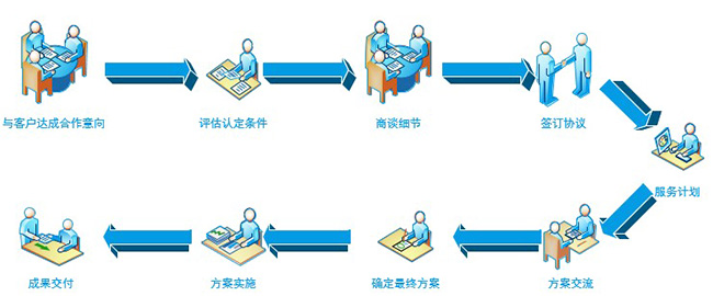 与客户沟通达成合作意向,项目组对客户进行评估并充分了解了客户高新加计的背景资料、设计相关的方案,查阅知识产权的所有权的有效性,对企业的主要产品所属的领域与企业的专家进行探讨,收集企业科技人员的劳动合同、职称证书,确定研发人员占职工总数的比例,审核企业3年的财务资料与技术资料,三个会计年度的研究开发费用总额占同期销售收入总额的比例是否符合政策规定,审核高新技术产品(服务)收入占企业同期总收入的比例是否不低于60%,评价企业的创新能力,与安全技术部门沟通,查看企业是否发生过重大安全、重大质量事故或严重环境违法行为。通过八项认定条件的审核分析,向客户提供我们的服务成果。