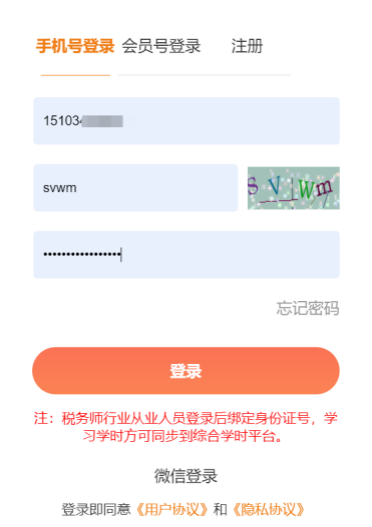 2、点击手机号码登录,输入手机号和验证码