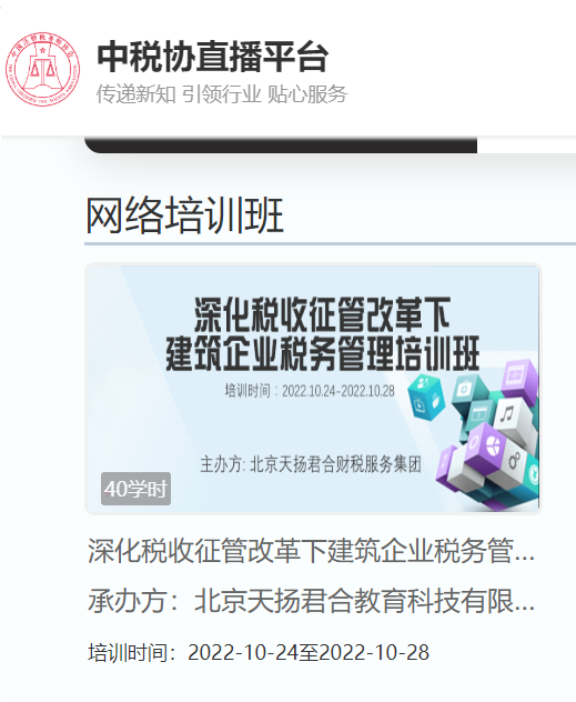 3、查找“深化税收征管改革下建筑企业税务管理培训班”,点击进入。
