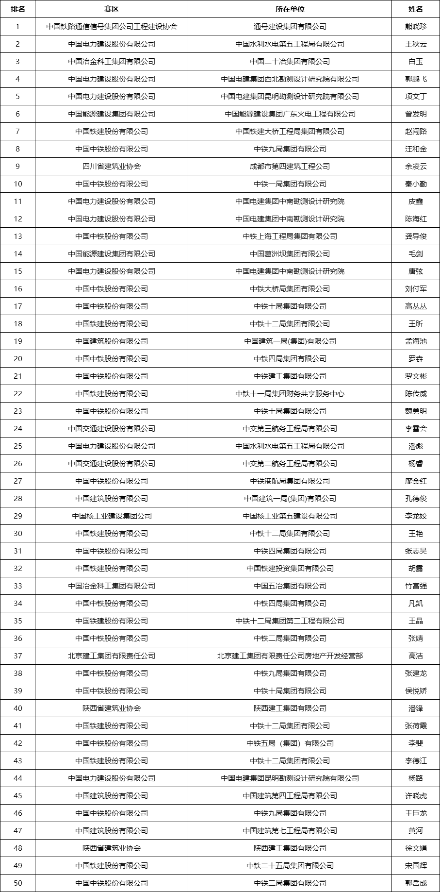 赛区获奖排名